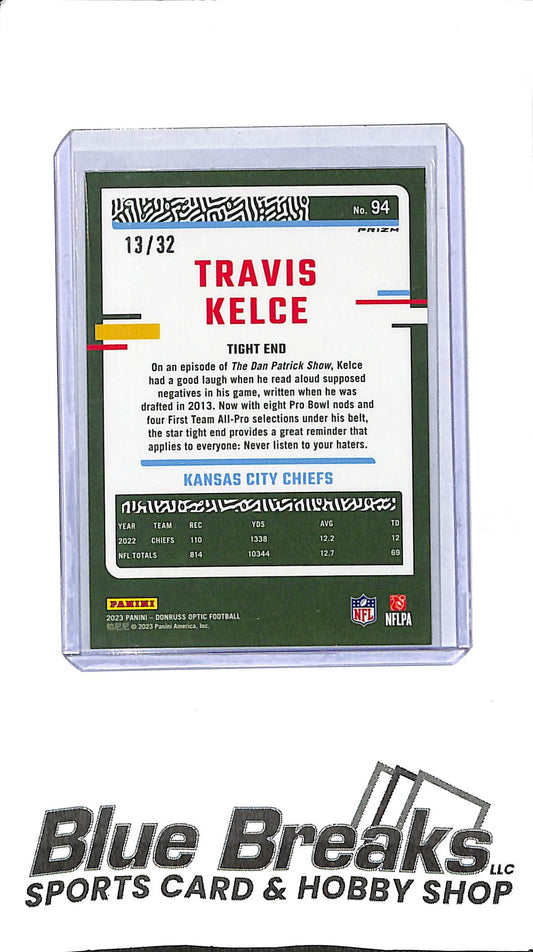 Travis Kelce 2023 Optic #94 NFL Shield 13/32 Chiefs