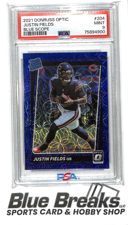2021 Panini Donruss Optic Blue Scope Rated Rookie Justin Fields #204 PSA 9 Bears