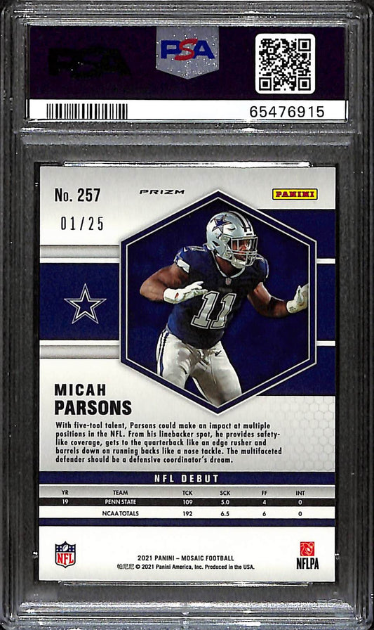 2021 Panini Mosaic Orange Fluorescent Micah Parsons 01/25 RC #257 PSA 10 Cowboys