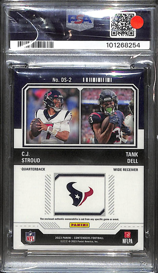 2023 Contenders - CJ Stroud - Tank Dell - Football - Houston Texans - Rookie Ticket Dual SWATCHES - # DS2 - PSA 8