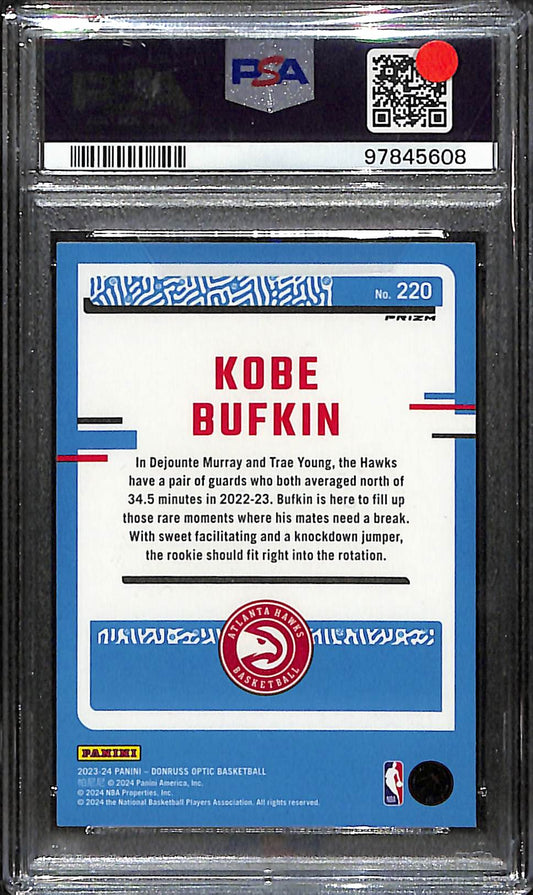 2023 Donruss Optic - Kobe Bufkin - Basketball - Atlanta Hawks - # 220 - Blue Velocity - PSA 9