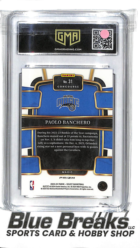 2023-24 Panini Select Concourse Blue Cracked Ice Prizm Paolo Banchero #31 GMA 10 Magic