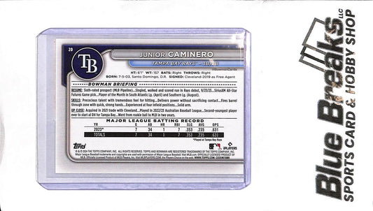 2024 Bowman - Junior Caminero RC #20 - Gold 33/50 - Baseball - Rays