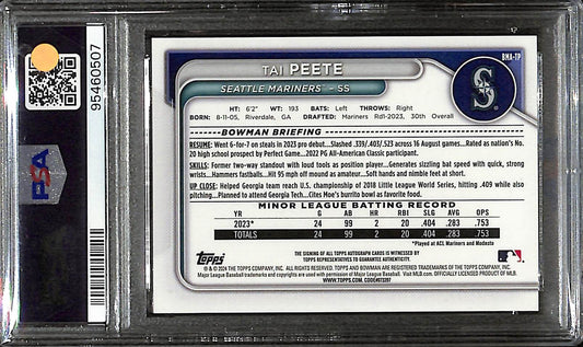 2024 Bowman Mega Box - Tai Peete - Baseball - Seattle Mariners - # TP - Chrome Prospect Autograph - PSA 10