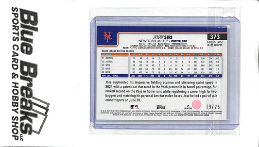 2025 Topps Series 2 orange parallel Jose Siri 19/25 #373 Mets