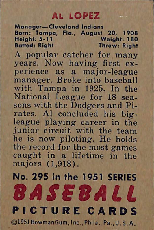 Sold outAl Lopez 1951 Bowman #295 Indians