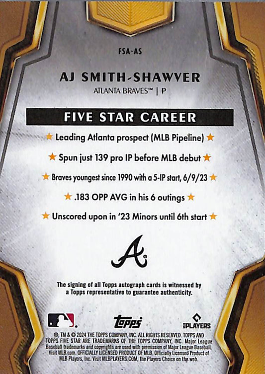 AJ Smith-Shawver 2024 Topps Five Star Auto FSA-AS Braves