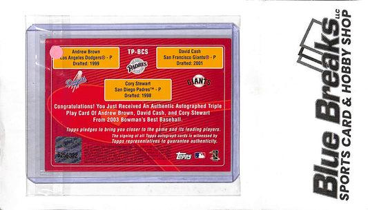 Andrew Brown David Cash Cory Stewart TP-BCS - 2003 Bowman's Best - Triple Auto - Baseball - Dodgers