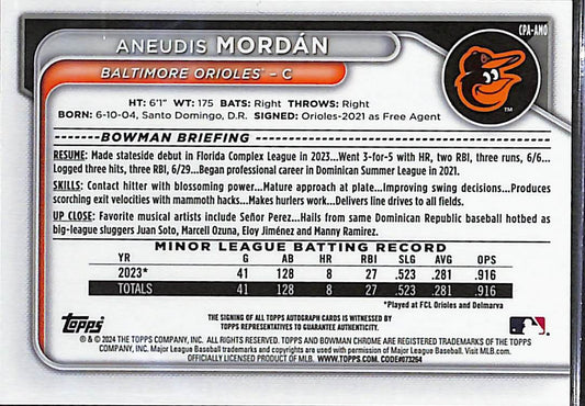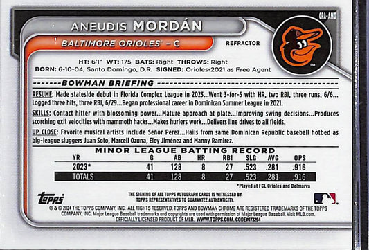 Aneudis Mordan 1st Bowman Auto Refractor 267/499 Orioles