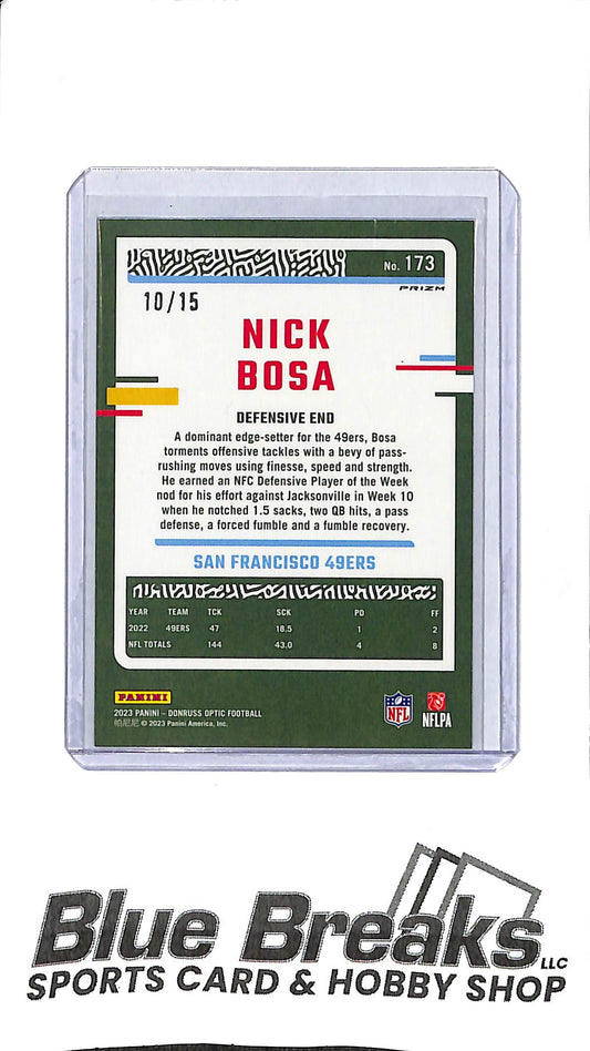 Nick Bosa 2023 Optic #173 Blue Ice 10/15 49ers