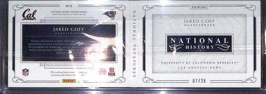 2016 Panini - National Treasures - Jared Goff - dual relic booklet - 07/25 - #6 - football - UCLA - Rams