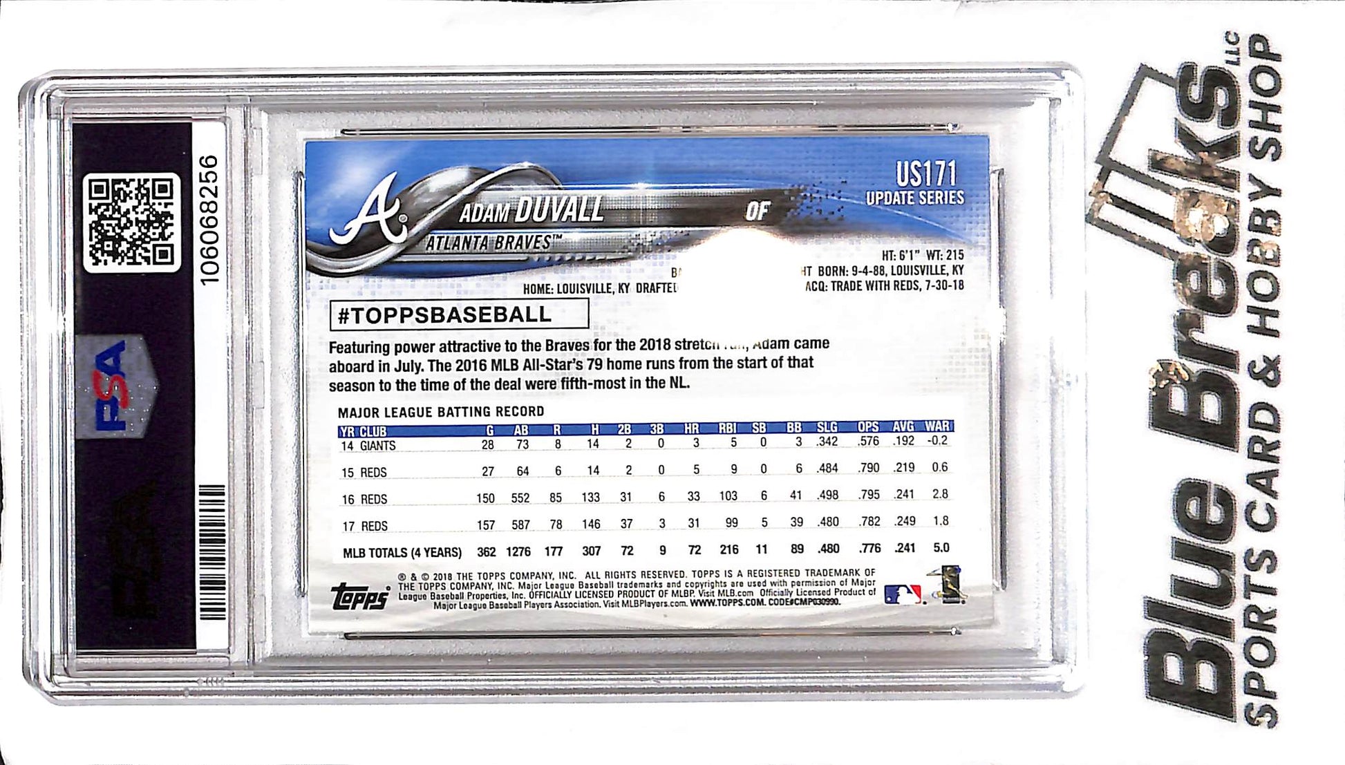 2018 Topps Update - Adam Duvall #US171 - In-Person Auto - PSA Authentic - Baseball - Braves