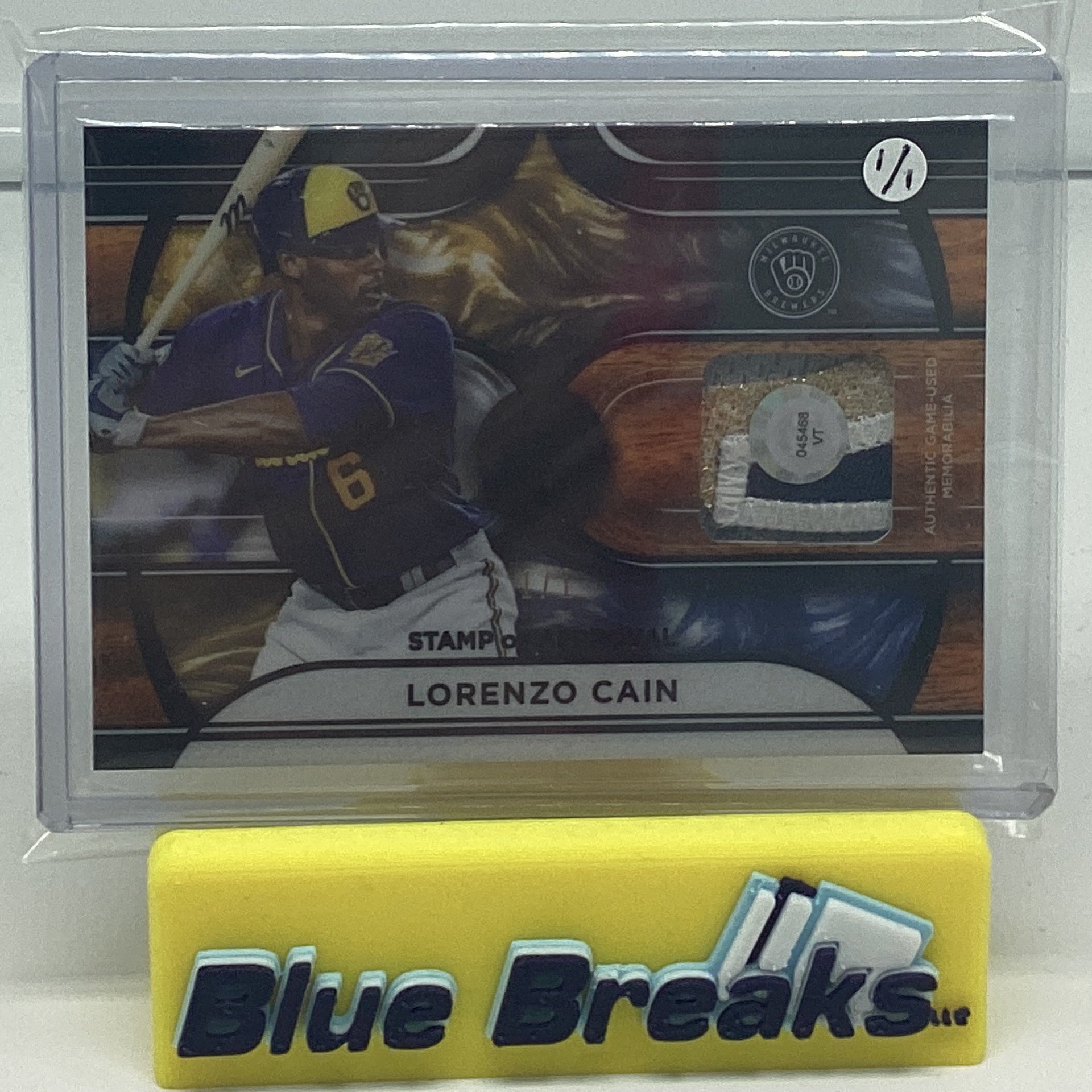 2022 Tribute Stamp of Approval relic - Lorenzo Cain 1/1 #SOA-LC Brewers