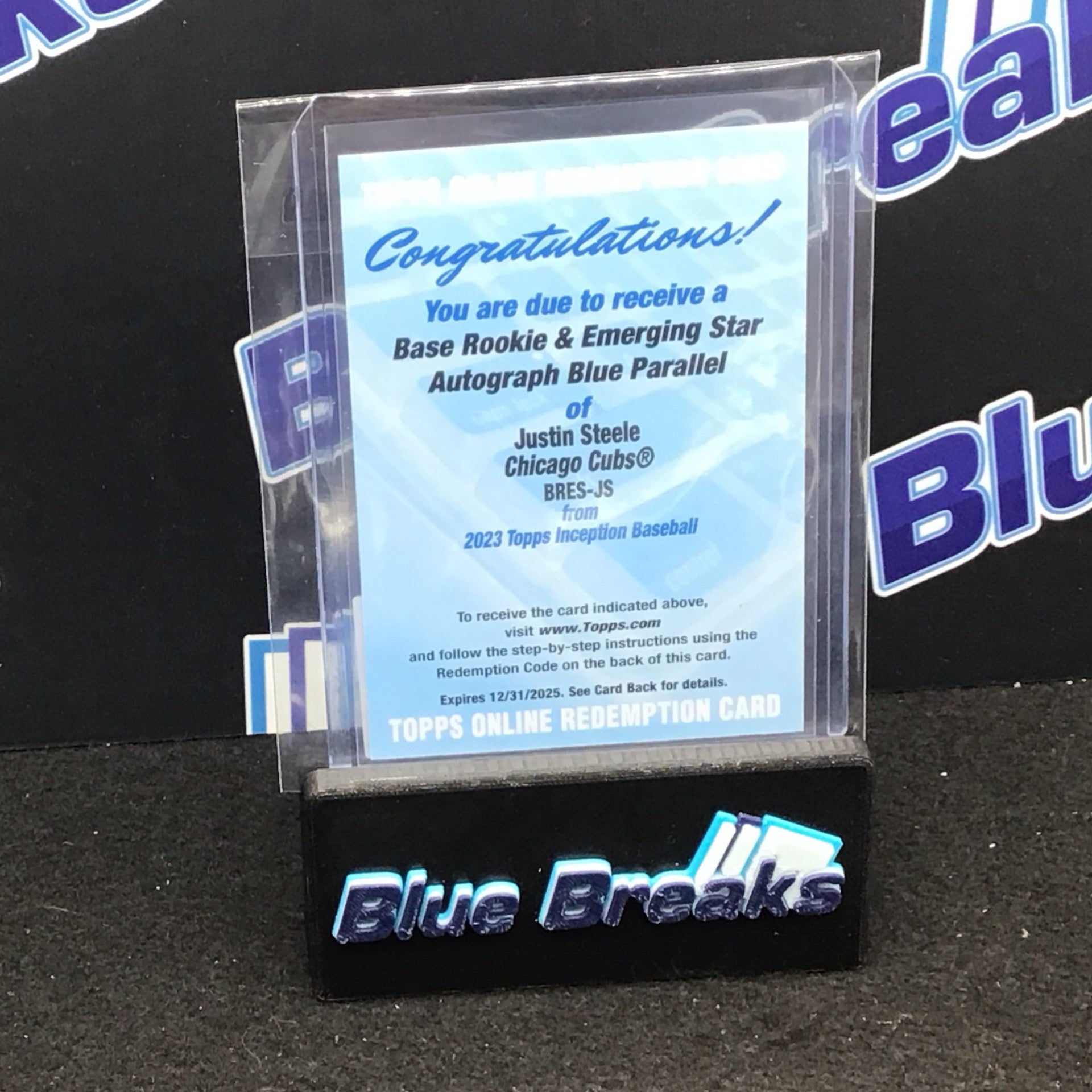2023 Topps Inception Rookie & Emerging Star blue parallel Justin Steele auto redemption #BRES-JS Cubs