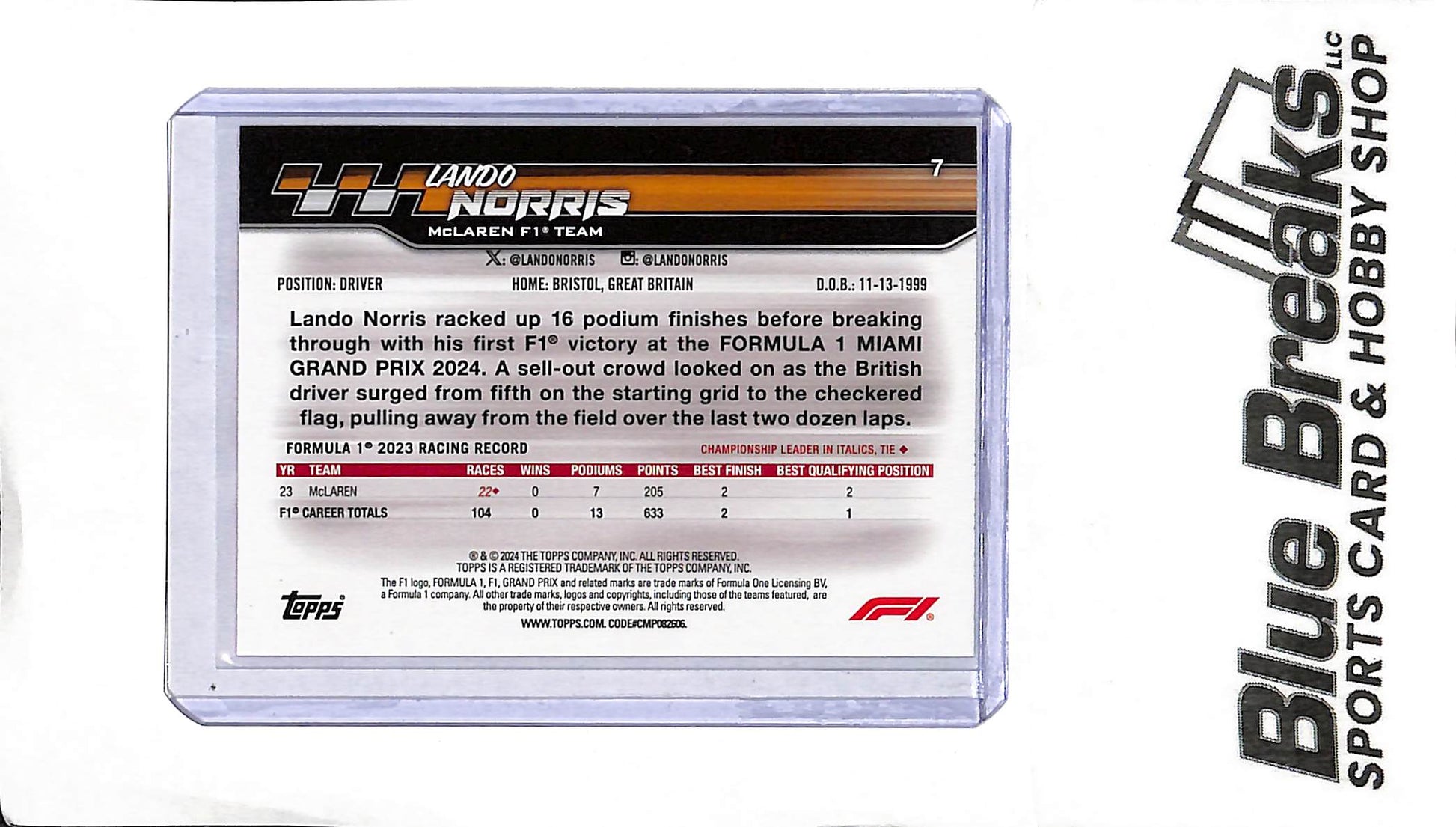 2024 Paddock Pass - Lando Norris #7 - Red - F1