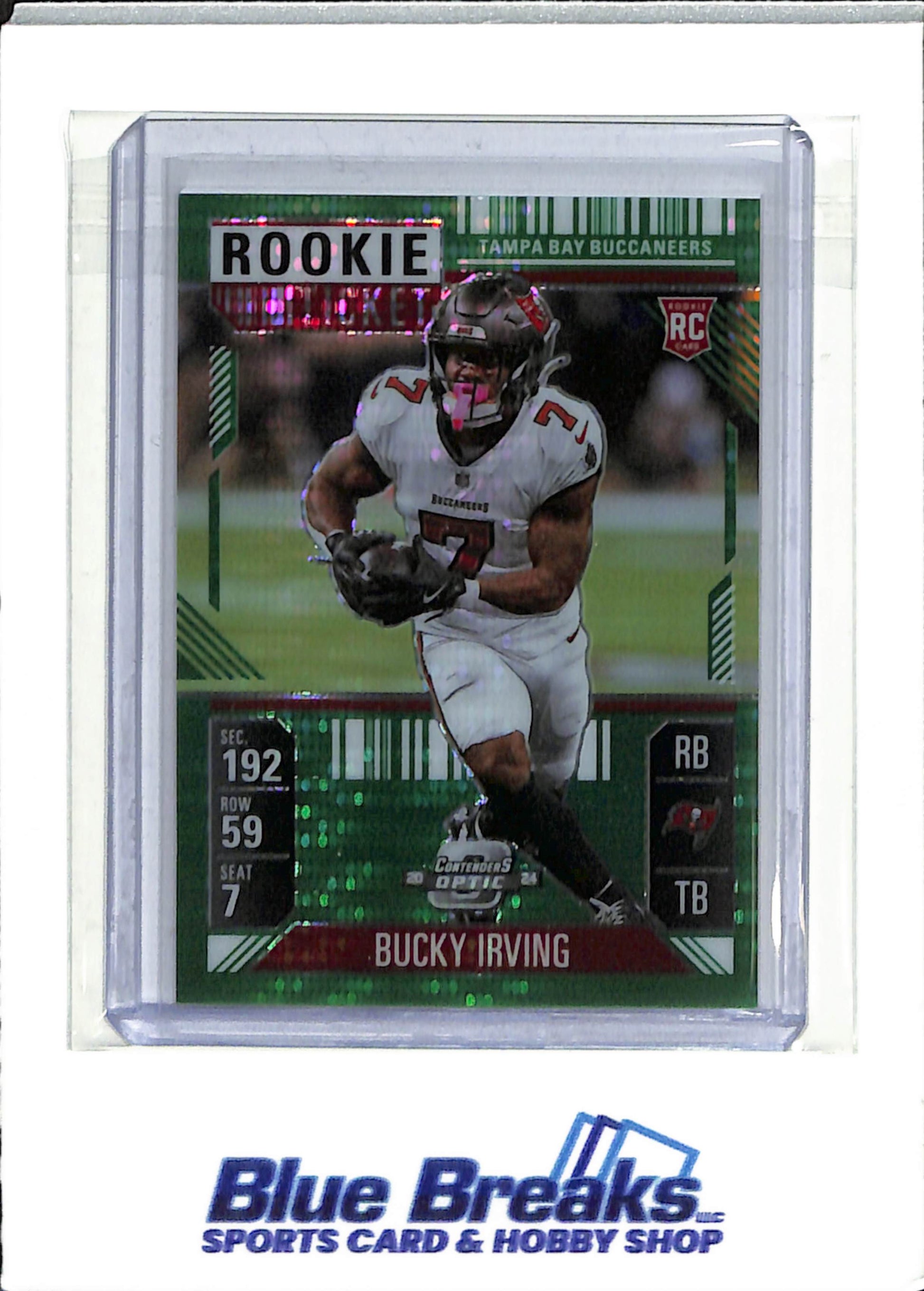 2024 Panini - Contenders Optic - Rookie Ticket - green pulsar prizm - Bucky Irving - 04/49 - RC - #67 - football - Buccaneers - drop