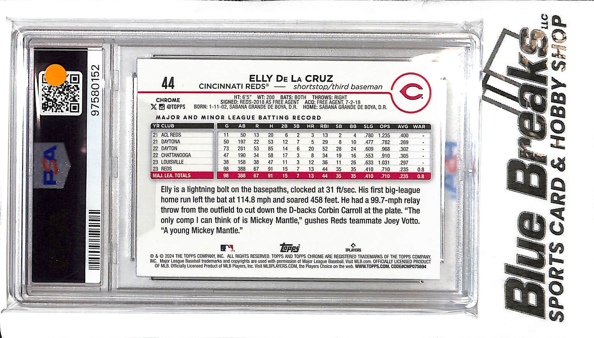2024 Topps Chrome - Elly De La Cruz - PSA Mint 9 - Raywave #44 - RC - Baseball - Reds