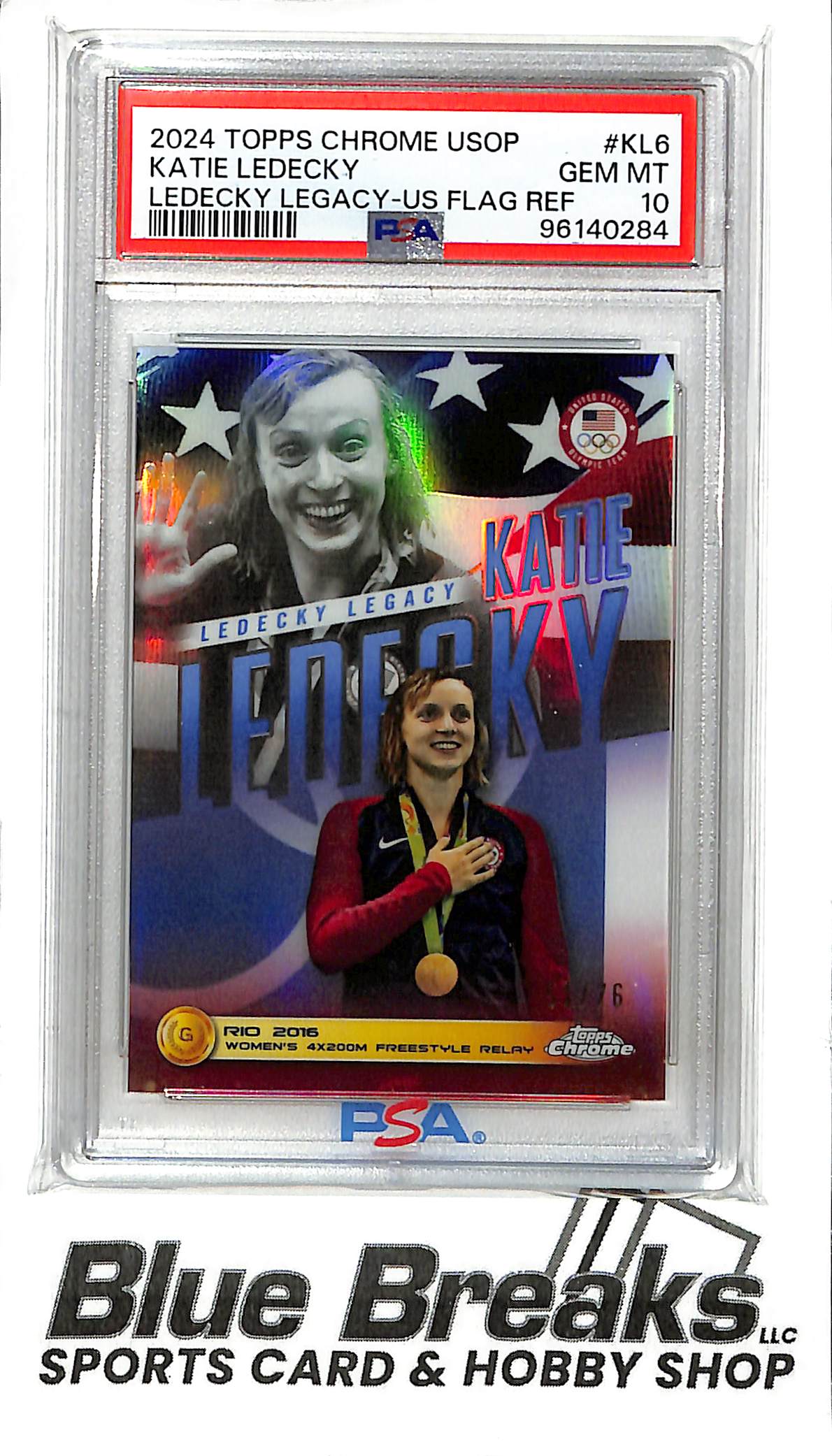 2024 Topps Chrome - USOP - Ledecky Legacy - US Flag Refractor - Katie Ledecky - 51/75 - #KL-6 - Olympics - Swimming - PSA 10