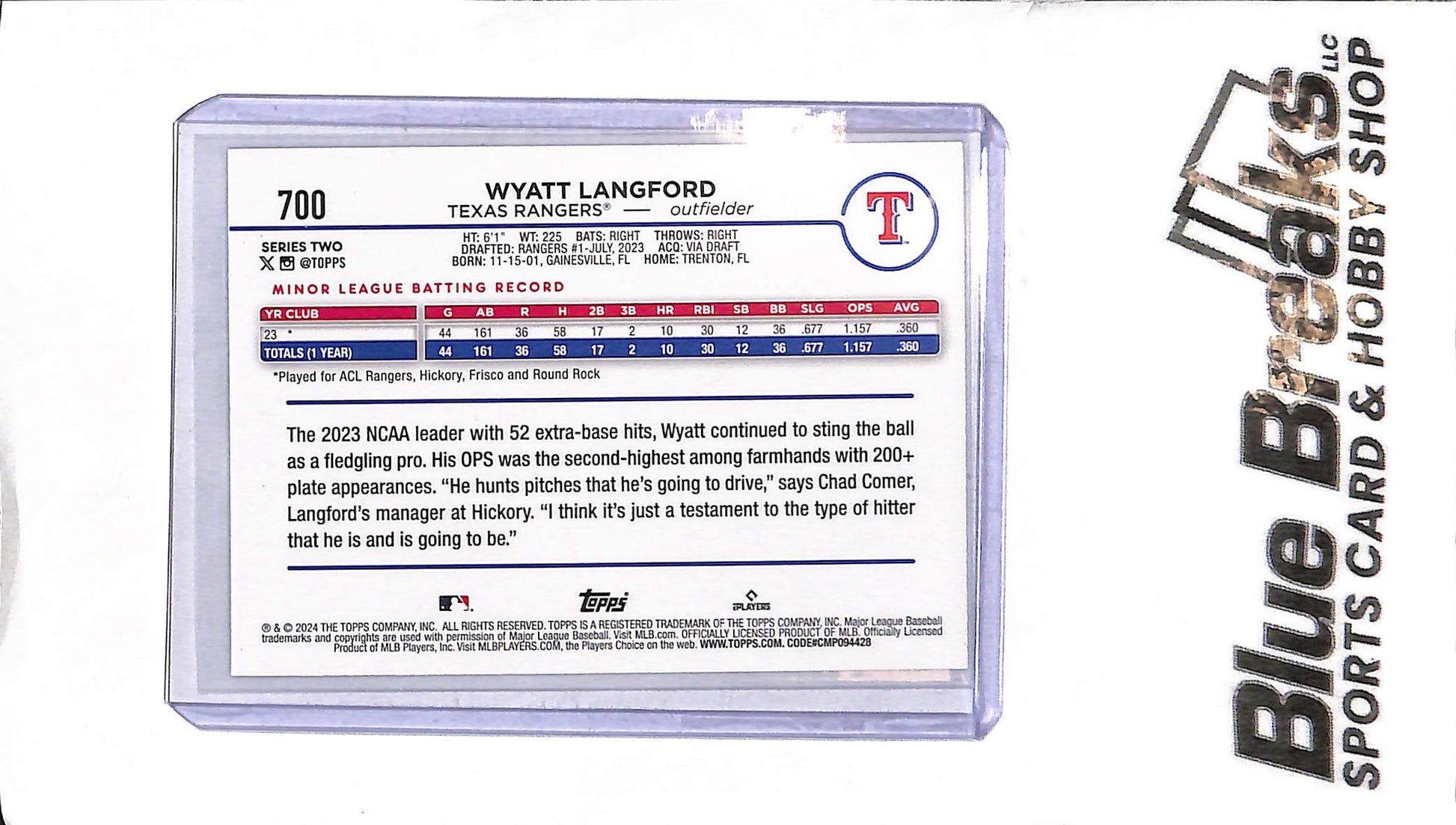 2024 Topps - Wyatt Langford - 700 - RC - Baseball - Rangers